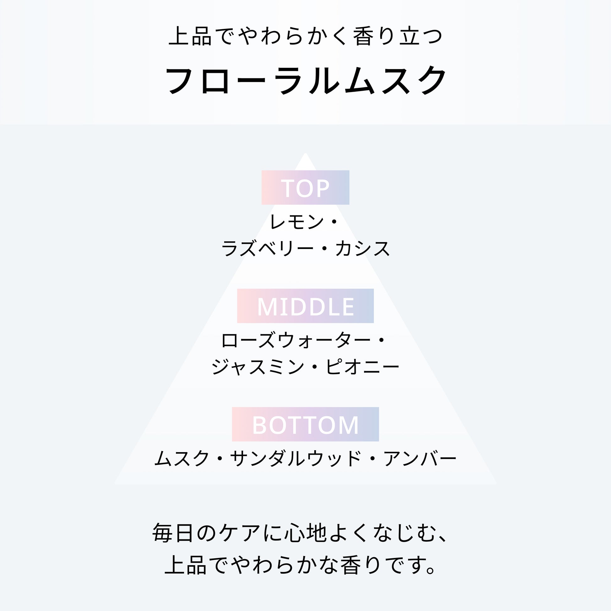 水、セタノール、コメヌカ油、ステアルトリモニウムクロリド、エチルヘキサン酸セチル、ステアリン酸グリセリル、マカデミア種子油、ホホバ種子油、ベタイン、加水分解ケラチン、レブリン酸、セラミドNG 、セラミドNP、セラミドAP、水添レシチン、フィトステロールズ、グリセリン、ベヘントリモニウムクロリド、ステアラミドプロピルジメチルアミン、オクチルドデカノール、オレス-2、ヘマチン、乳酸、BG、イソプロパノール、フェノキシエタノール、メチルパラベン、プロピルパラベン、香料